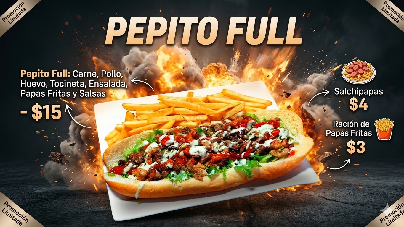 Carne, Pollo, Queso Amarillo, Tocineta y Huevo.