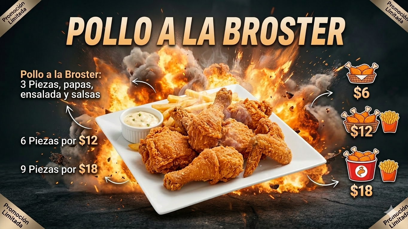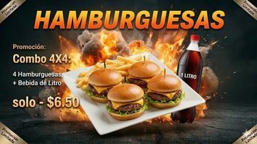 Carne, Pollo, Huevo, Tocineta, Ensalada, Papas Fritas y Salsas.