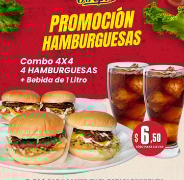 Abrimos Jueves y Lunes de 6:00 p.m a 11:00 p.m y Sábados y Domingos de 6:00 p.m a 12:00 a.m